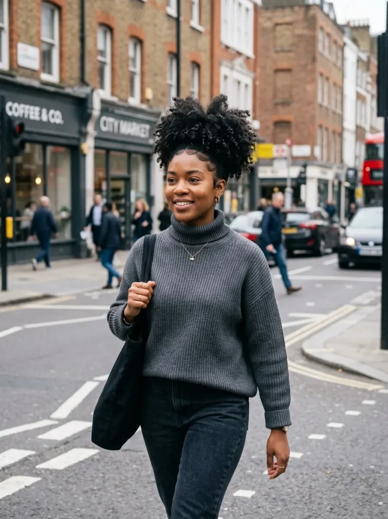 In my experience, keeping the edges smooth while letting the curls stay natural creates the perfect balance. This style works best for naturally curly or coily hair and is incredibly comfortable for all-day wear. It keeps your hair off your neck while still showcasing its full beauty, making it both practical and visually stunning.