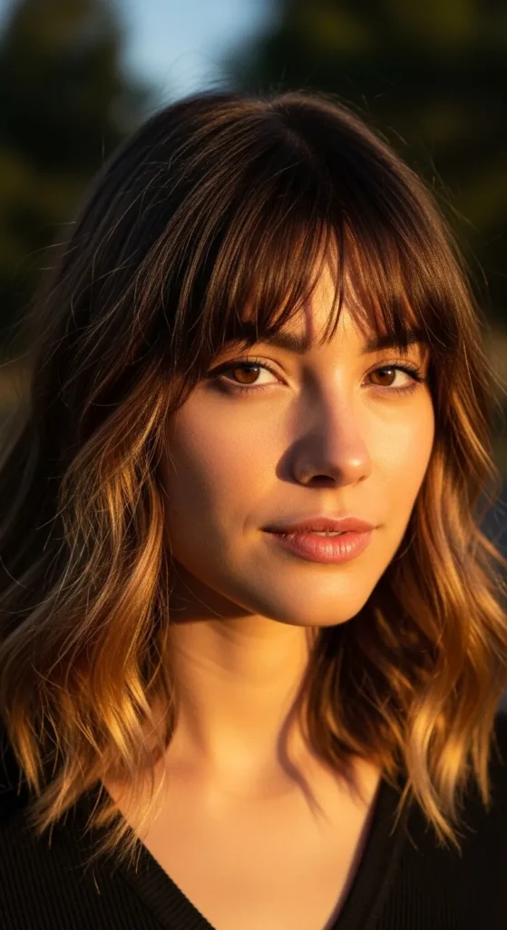 Adding balayage to a shaggy wolf cut with bangs enhances the layers beautifully. The lighter pieces highlight movement and make the haircut appear more dimensional. It’s subtle yet noticeable, which is why it performs very well on Pinterest.