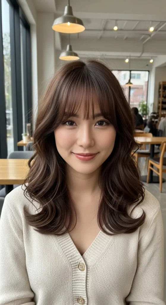 This style is ideal for those who want something modern yet feminine. The rounded bangs soften sharp features and make the face appear balanced. It’s versatile enough for both casual days and formal events.