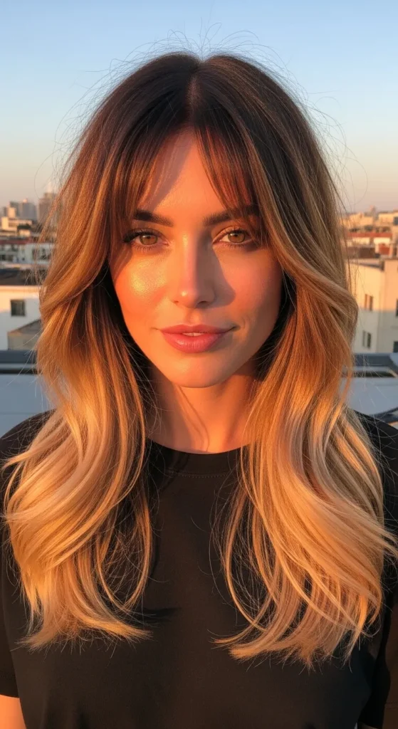 The balayage wolf cut without bangs is perfect for showcasing dimension and movement. The seamless color blend enhances every layer, making the wolf cut silhouette even more dynamic. With the forehead clear, the style appears lighter and more open, balancing the boldness of the layered shape.