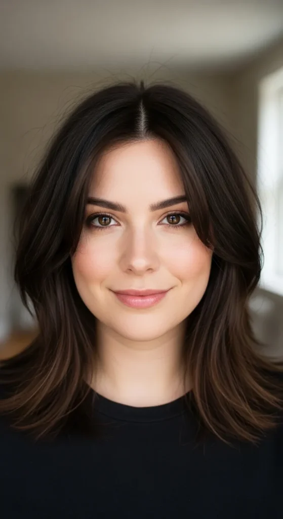 Pinterest users gravitate toward this wolf cut without bangs because it feels approachable yet stylish. The highlights enhance movement, especially when styled in loose waves. It’s an ideal option for anyone wanting to refresh their brunette hair while keeping the overall vibe polished and wearable for everyday life.