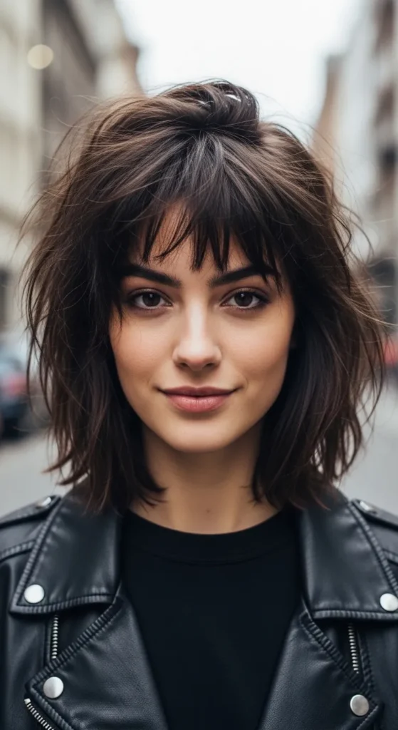The shag-inspired wolf cut without bangs combines retro charm with modern edge. The tousled layers bring texture and movement, while the absence of bangs keeps the look fresh and contemporary. This cut feels playful yet controlled, offering structure without appearing overly styled.